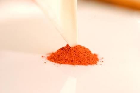 Az alapanyagokból vízzel történő keverés után kétféle masszát nyerünk – a képen a képlékeny formázómassza préselése látható.